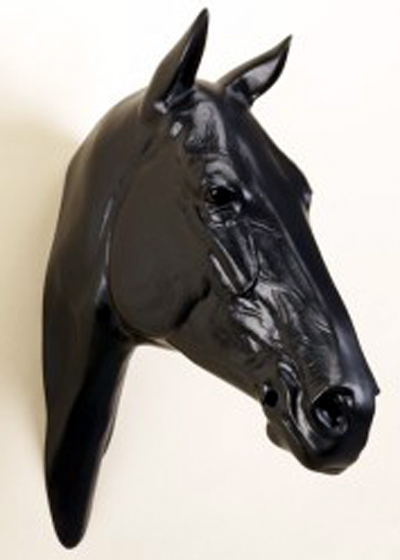 CABEÇA DE CAVALO DE FIBRA (MANEQUIM)Este modelo de uma cabeça de cavalo pode ser utilizado pendurado na parede. Bastante real e expressivo. |